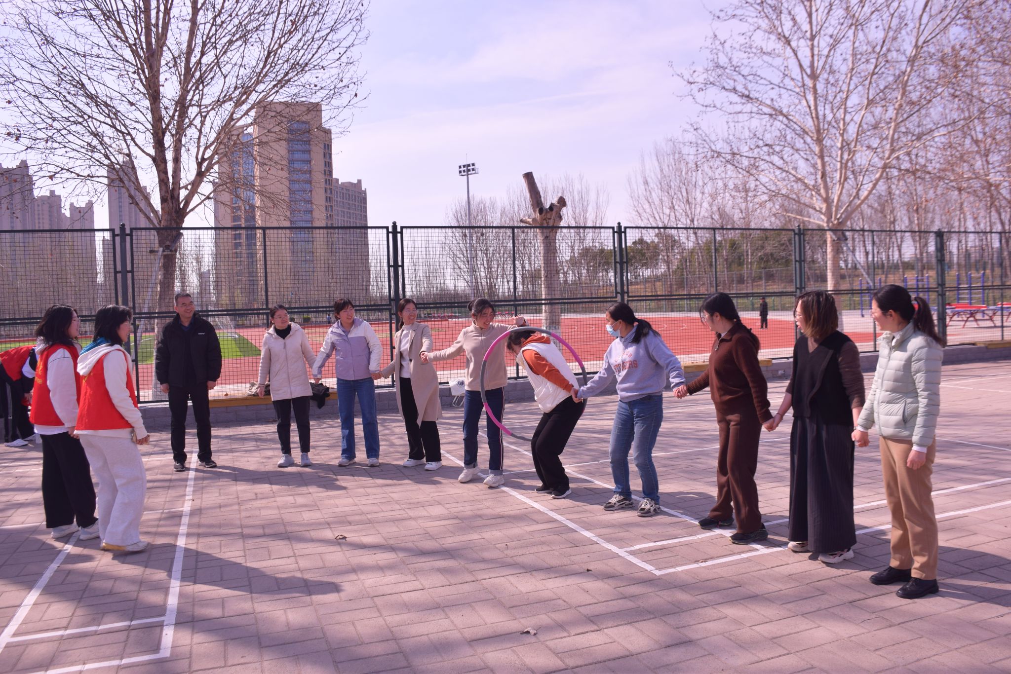在一圈到底项目中,各小组成员手拉手围成圈,通过身体的巧妙传递,让呼啦圈迅速穿越。大家密切配合,动作敏捷。螃蟹运球时,两两一组的教职工们背对背,将球运向终点,过程中既要保持球的稳定,又要把控速度,现场充满了紧张与欢乐。快乐毛毛虫项目里,小组队员们齐心协力骑在道具上,喊着口号奋力向前冲,展现出强大的团队凝聚力。不倒森林环节,大家专注于维持手中竹竿的平衡,快速换位,场面十分精彩。各小组在四个项目中充分发挥团队协作精神,在欢声笑语中完成比赛,不仅增进了彼此间的情谊,也为三八节增添了一抹亮丽色彩 。