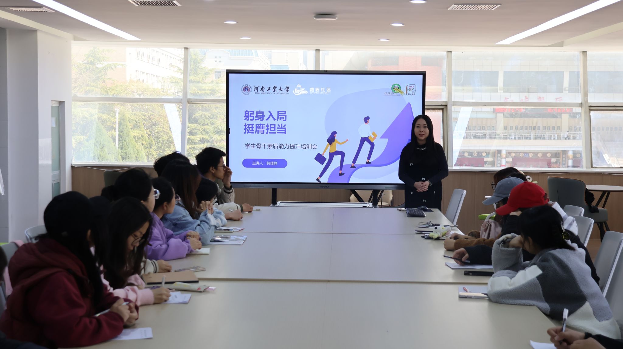 活动伊始,2023级辅导员韩佳静以“躬身入局、挺膺担当”为主题,引导学生骨干明确自身定位,深刻理解服务同学、引领班级的职责使命。她强调,学生骨干是连接学院与学生的桥梁纽带,要充分发挥先锋模范作用,以高度的责任感和使命感投入到班级管理中。